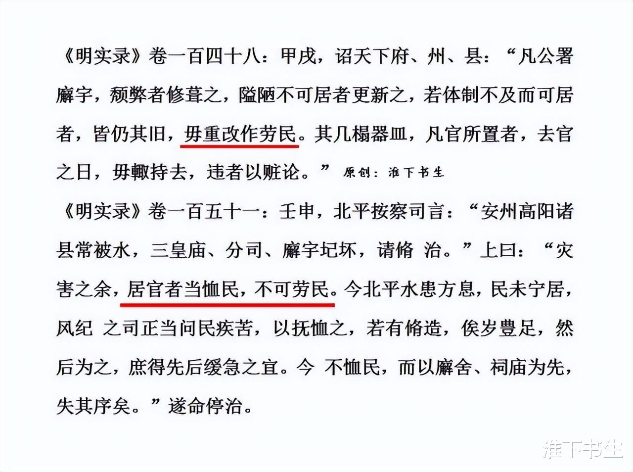 因此,整个《明太祖实录》,每一卷每一页,反复在强调要“便民、利民、惠民、安民、爱民、亲民、抚民、恤民、泽民、养民 、教民 、救民、保民、息民、福民、为民、乐民、靖民等等”,而不能“劳民、伤民、害民、虐民、掠民、扰民、剥民、厉民、饥民、寒民、殃民、病民等等”,因为后者会导致民艰、民困、劳民伤财、生民涂炭、民不聊生!