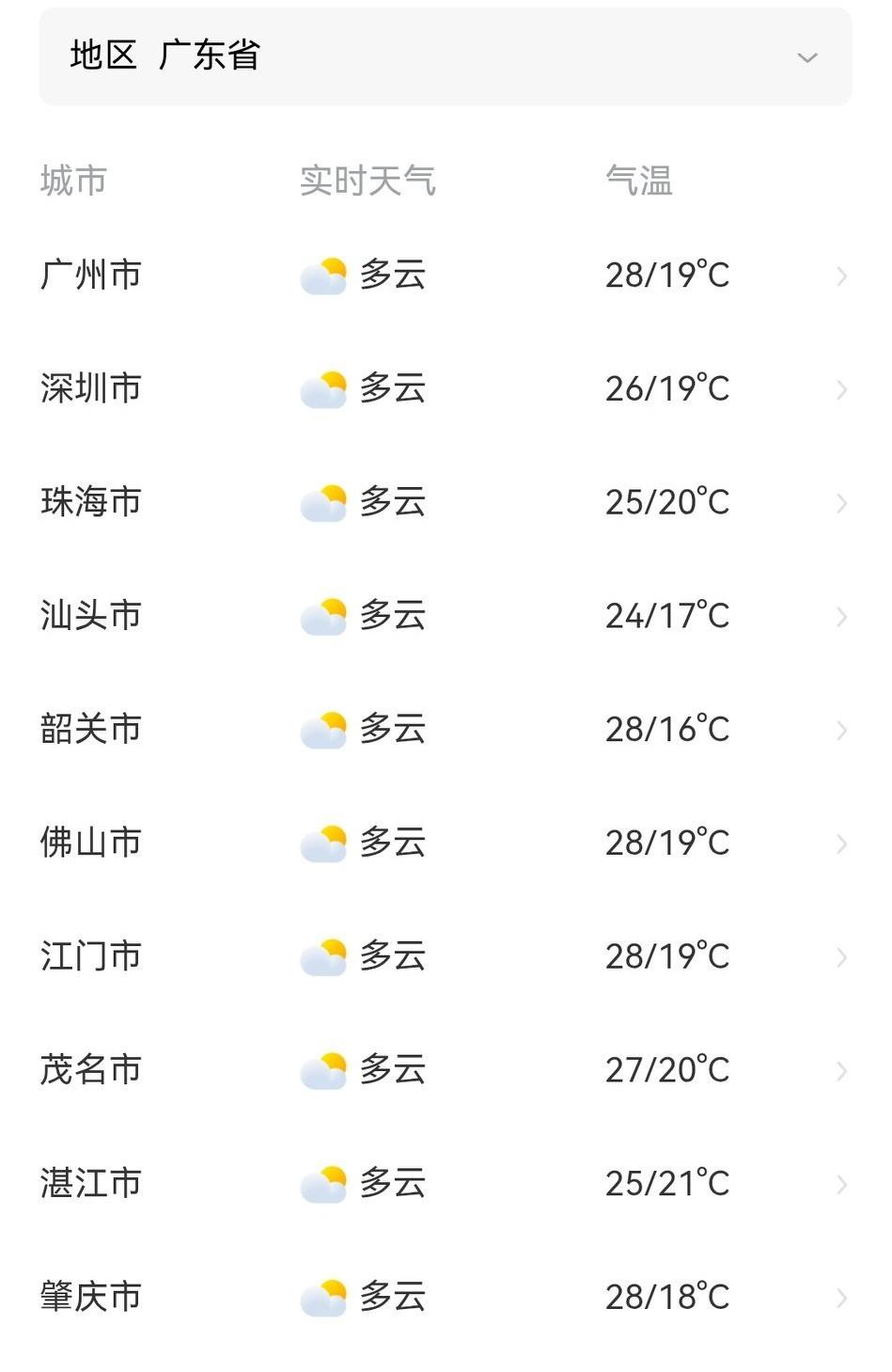 河源、梅州、粤东和珠三角其余市县多云到阴天