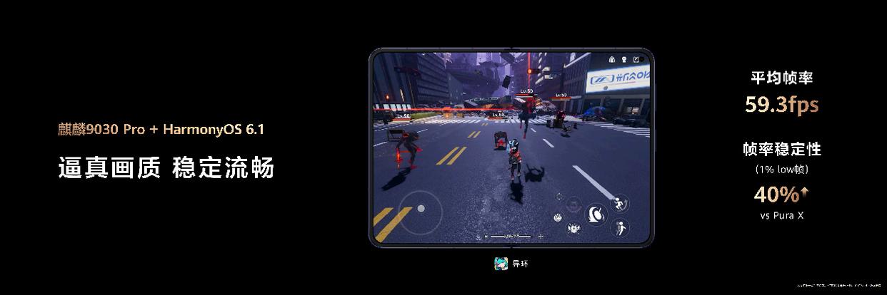 阔屏游戏体验全新升级:游玩《异环》时纵向视野提升30%,在超丝滑方舟引擎的加持下,其帧率稳定性相比于Pura X提升40%,平均帧率59.2fps。华为游戏中心年度期待游戏《失控进化》正式加入鸿蒙生态,并将于今日开启技术测试招募,第一批鸿蒙玩家5月11日即可登岛。针对华为Pura X Max,《失控进化》进行了深度适配和优化,更广的视野、更强的画质、更稳的帧率和持久续航,带来更加畅快沉浸的游戏体验。
