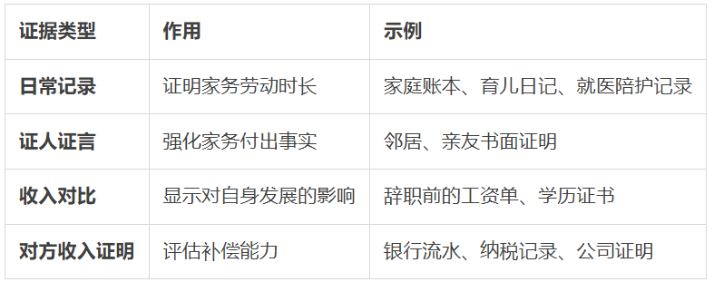 “对方收入高但没时间顾家,如何举证?”