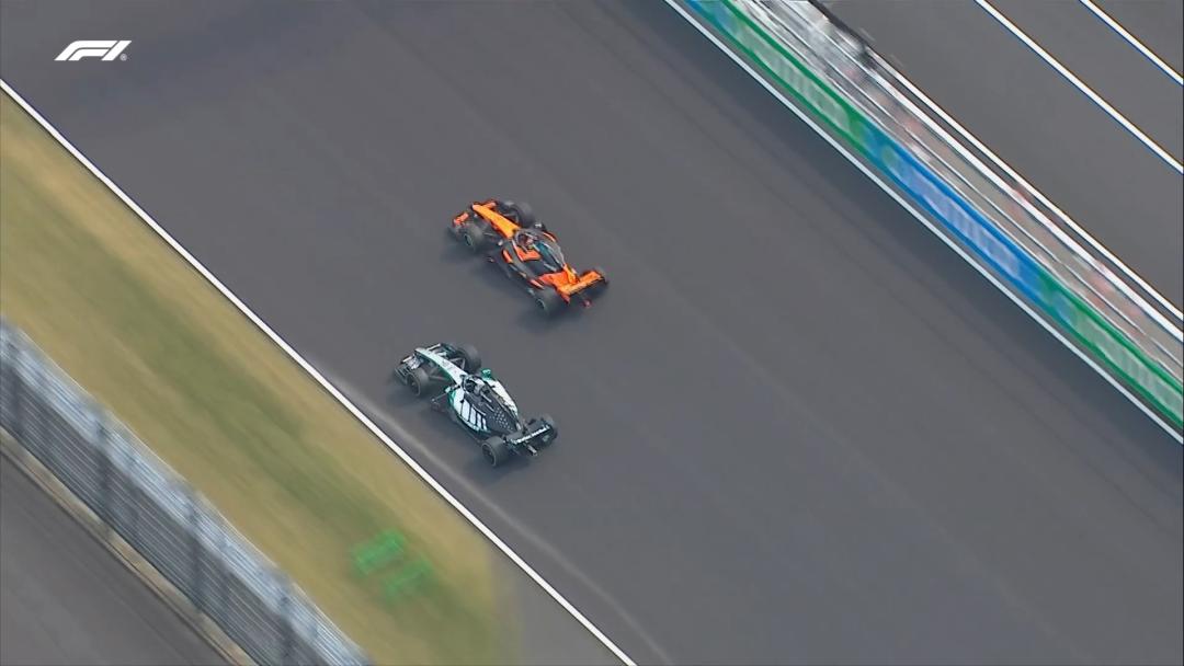 不过,“银箭”双雄很快开始追击,乔治·拉塞尔挑战迈凯伦车手的领跑位置——但他未能成功超越。