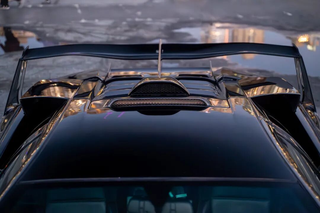 Liberty Walk还为这台意大利超跑打造了独特的轮拱和侧裙,它甚至配有一个巨大的车顶进气口,不知道是否只是装饰品。车头和侧面已经足够奇特,车尾则更加夸张,配备了定制后保险杠、扩散器、尾翼和尾灯。