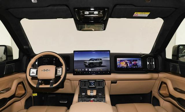 内饰层面,方程豹豹8和坦克700 Hi4-T展现出了完全不同的风格。方程豹豹8采用了三块大屏的设计,科技感很突出,副驾屏幕也能提升娱乐性。同时,方程豹豹8保留了大量实体按键,不仅能提升盲操作的便捷性,在越野过程中,车辆左右摇晃,不方便触摸屏幕时,通过实体按键来控制车辆功能,这一点值得给好评;坦克700 Hi4-T的内饰设计比较简洁,两块大屏属于当下的主流设计,但该车同样保留了大量实体按键,也能提升操作的便捷性,并且坦克700 Hi4-T中控台下部还配备了表盘,也能增加一些豪华感。就内饰来说,坦克700 Hi4-T偏传统,方程豹豹8偏科技。