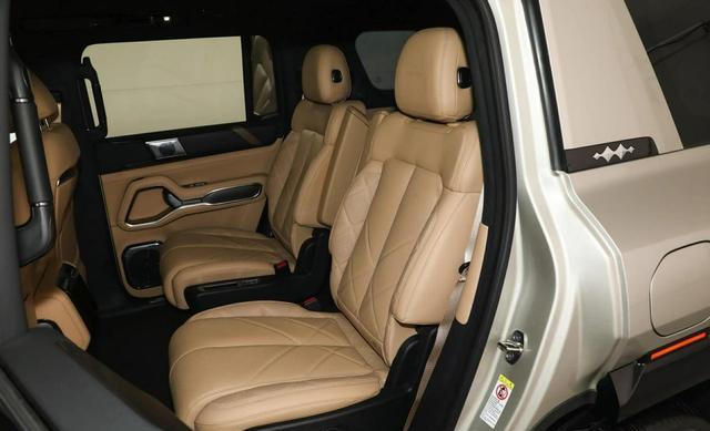 对于硬派越野车而言,日常通勤的舒适性也同样重要,这一环节咱们来看看两台车的空间表现。从尺寸来看,方程豹豹8的车长有明显优势,坦克700 Hi4-T的轴距更长,但方程豹豹8采用了6座布局,坦克700 Hi4-T采用了5座布局。其实坦克700 Hi4-T的整体空间足够宽裕,但方程豹豹8毕竟是2+2+2的座椅布局,整体的空间更灵活,一、二排同样宽裕,第三排也能满足日常乘坐需求。