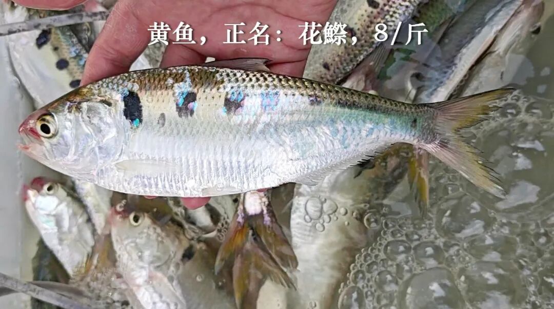 珠江口叫黄鱼的,一般是花鰶,今天的形态色泽很漂亮,但它刺多肉薄,只能卖8元一斤。