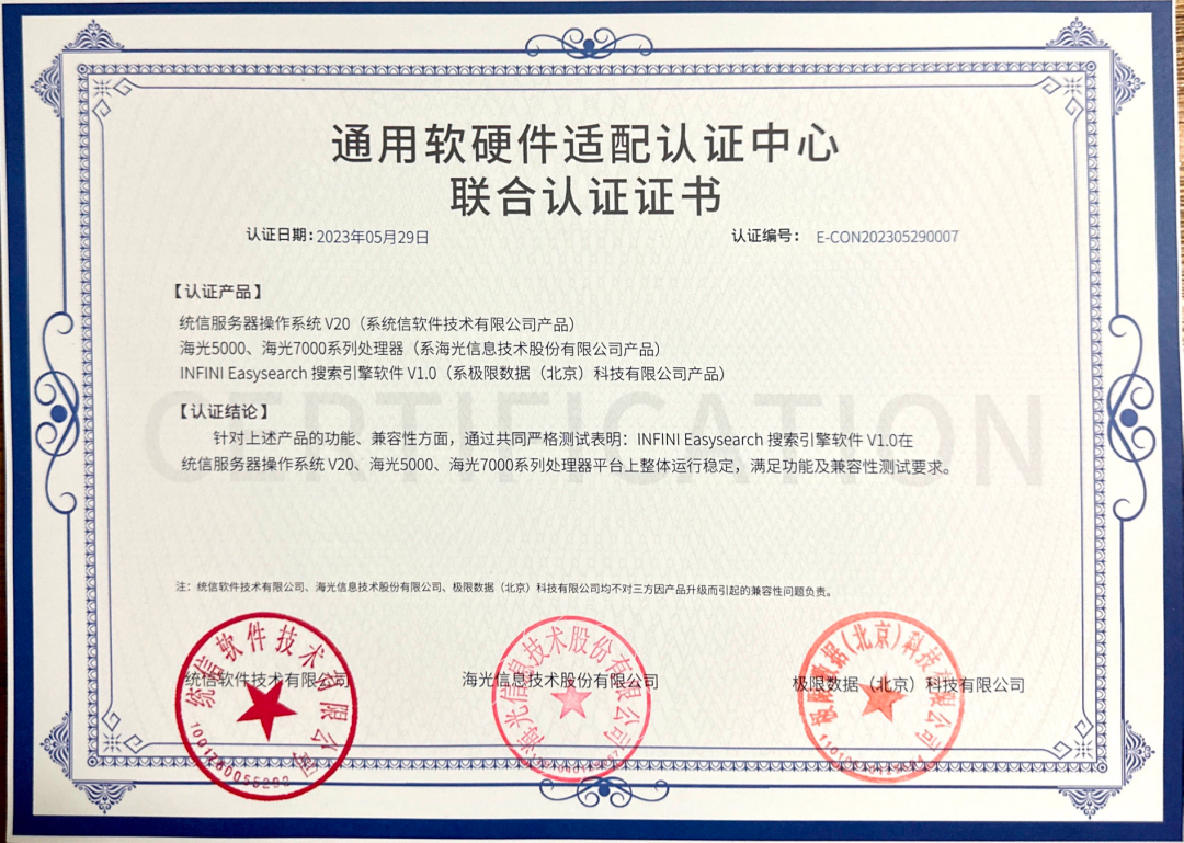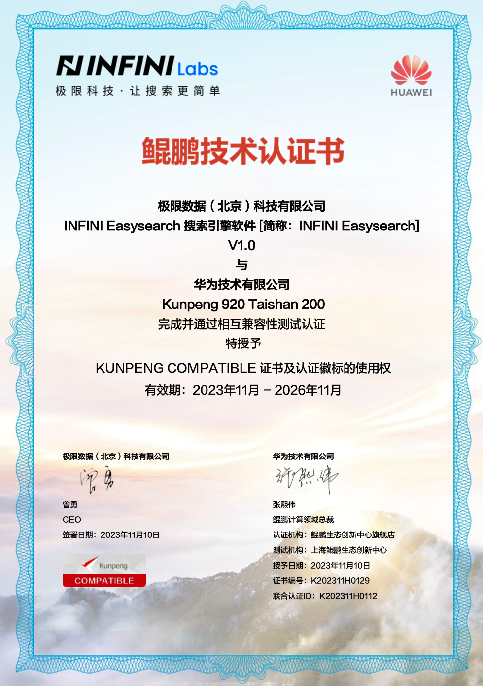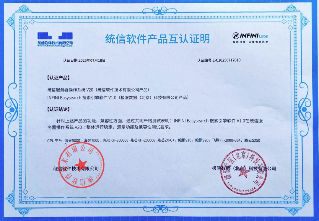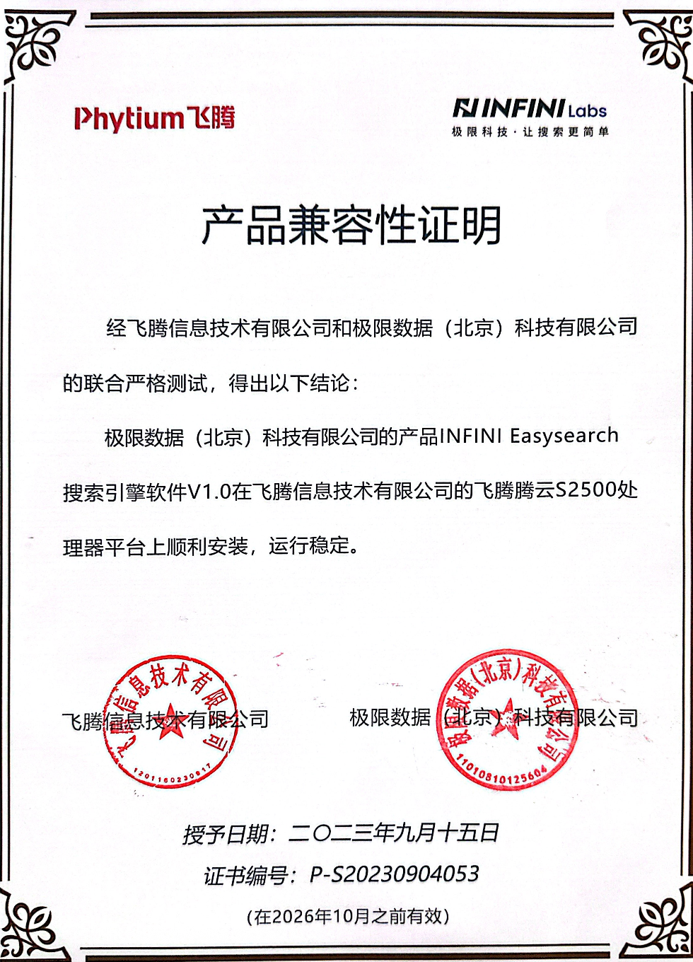 在产品能力上,Easysearch不仅完全兼容Elasticsearch的生态接口,保障了用户业务的无缝迁移,更在性能优化、存储效率、企业级安全及原生中文处理等方面实现了超越。其内置的Web管理控制台、全面的数据加密与权限管控功能,提供了开箱即用的企业级体验。尤为关键的是,Easysearch率先完成了与国产主流CPU(如鲲鹏、飞腾、海光)和操作系统(如统信UOS、银河麒麟)的深度适配与互认证,构建了完整的信创技术栈支持能力,解决了国外产品在国产化环境下兼容性差、维护困难、更新受限等长期存在的问题。