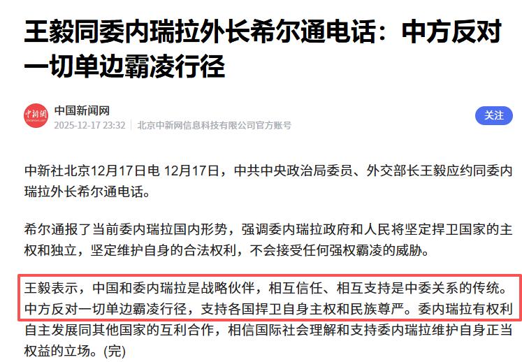 中方更是明牌支持委内瑞拉,直言“反对一切单边霸凌,支持弱者是传统”。