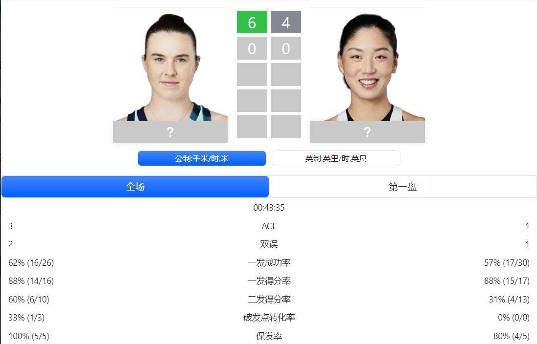 从第一盘的对比来看,诺斯科娃的发球和力量明显占据上风,王欣瑜的得分大多来源于诺斯科娃的非受迫性失误,正面交锋上,王欣瑜的压力显而易见。再加上赛程上的不利因素,王欣瑜的体力和状态受到较大影响。
