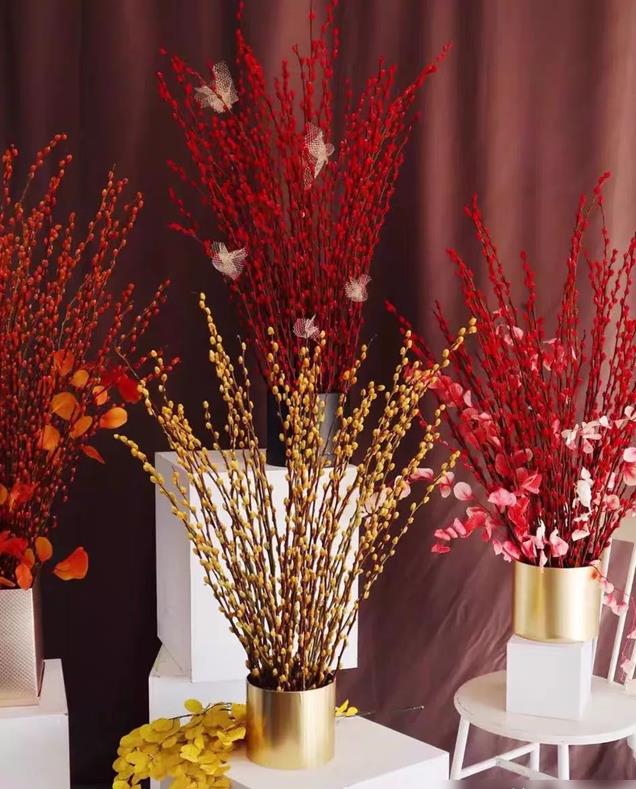 常见的染色有红色、绿色和金色等,这些色彩鲜艳的银柳在各类花市中就如同点睛之笔,吸引着众多顾客停下来细细观赏。