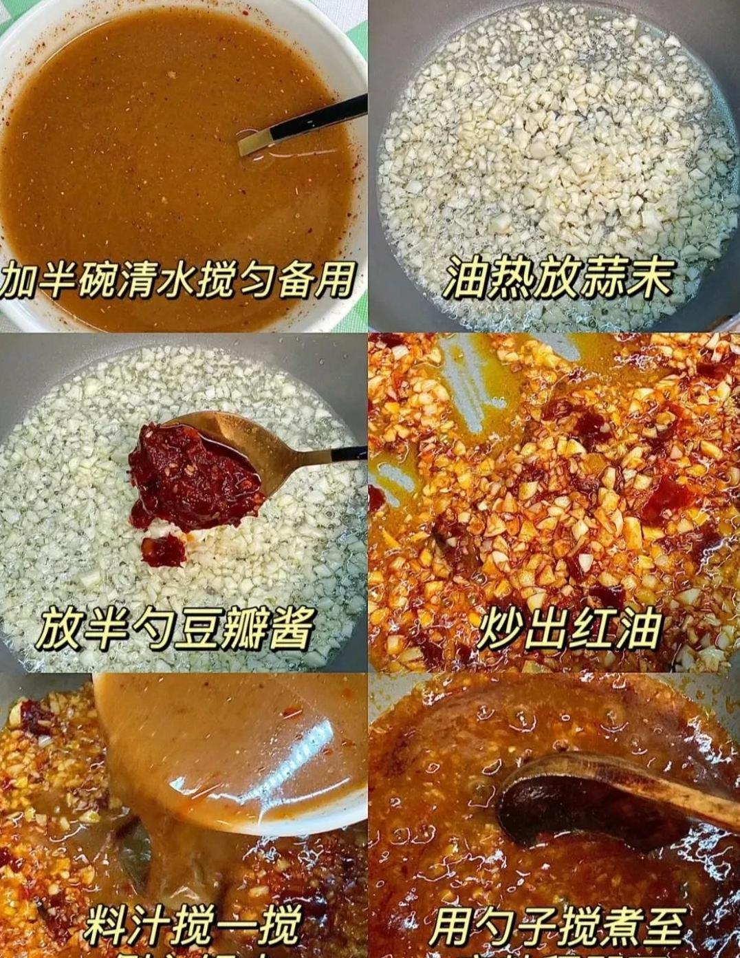 自制的酱汁需要几种简单的酱料按比例调和,加水搅匀后,浓稠的酱香便被激发出来。