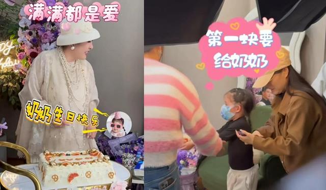 向太生日和孙女手拉手!小奶黄切第一块蛋糕给奶奶,长得美嘴还甜