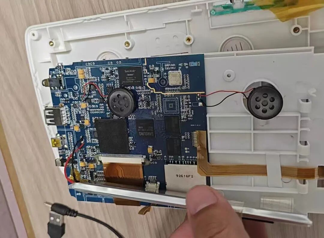 后来我找到了拆机图,主板上有一个600MHz主频的ARM11架构处理器,锂电池容量是4500mAh,侧面还有HDMI视频传输口、USB 2.0数据传输口和3.5mm耳机孔,支持蓝牙和WiFi。