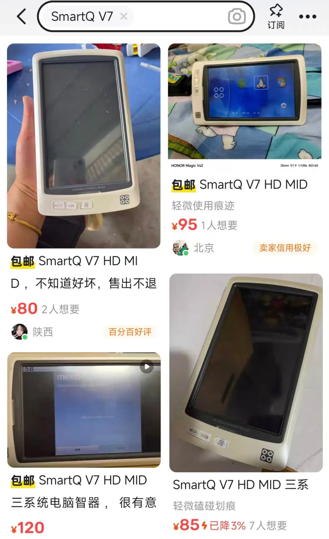 根据卖家介绍,这是一款名叫SmartQ V7的平板电脑,首发于2009年,难怪看起来还是上个世纪的产物,因为苹果首款平板iPad1发布于2010年,在此之前的平板电脑都是这种大板砖形态,当时也叫MID设备,是英特尔在2007年提出的概念。