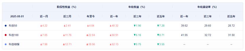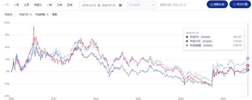 截至2025年7月31日,基日同为2019年12月31日的科创系列宽基指数中,科创综指延续科技成长风格高弹性,且波动小于科创50、科创100,历史收益更突出。