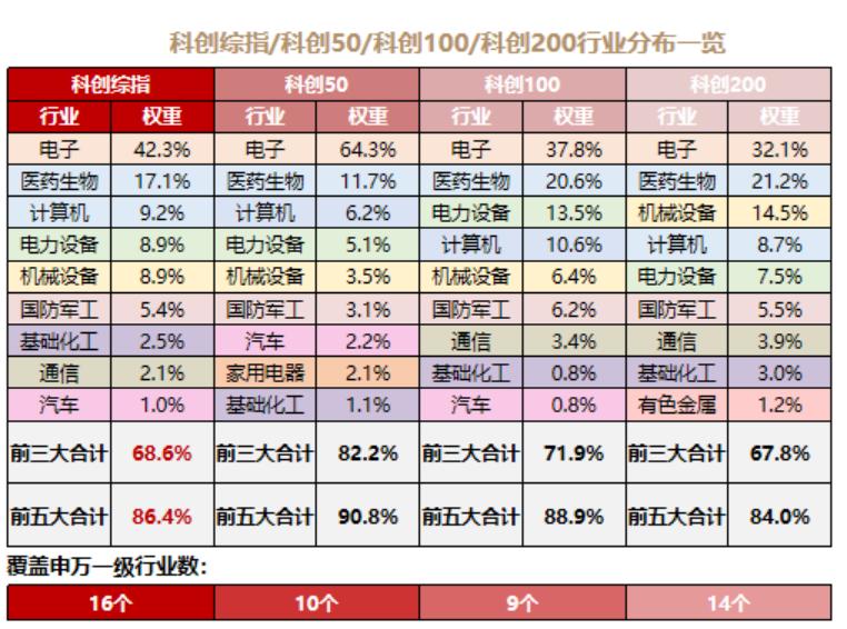 科创综指覆盖16个申万一级行业,不仅涵盖了电子、医药生物、电力设备等行业,更新纳入了环保、有色金属、农林牧渔等行业,具有较强的行业多样性和全面性。
