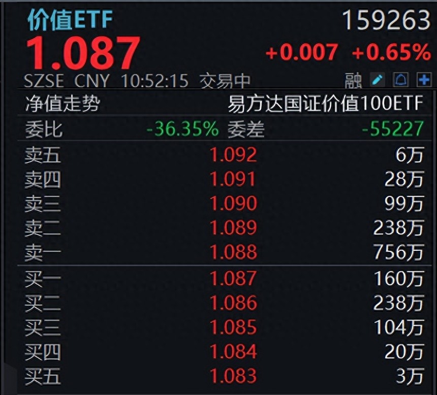 作为目前唯一一只跟踪的国证价值100指数的ETF,价值ETF(159263)受关注程度明显提升。在今天的震荡行情中,甚至一度逆势上涨。今天的表现明显强于大盘主要股指。