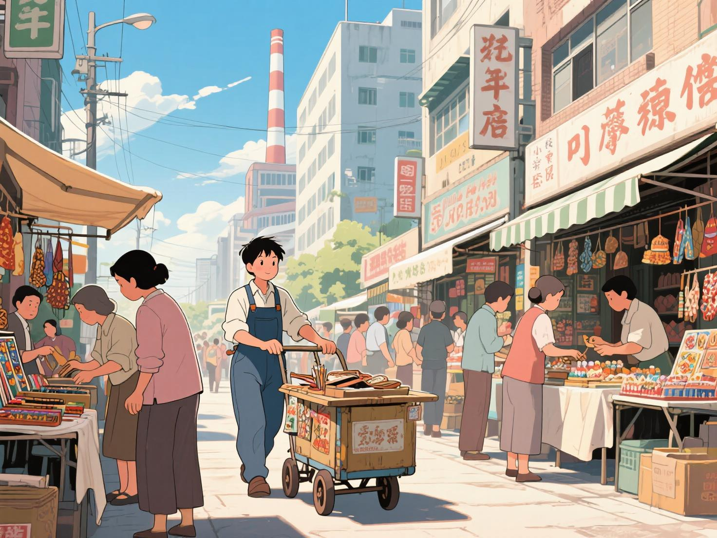 街头巷尾卖东西的小商贩和做手工业的人逐渐增多,市场变得生机勃勃。