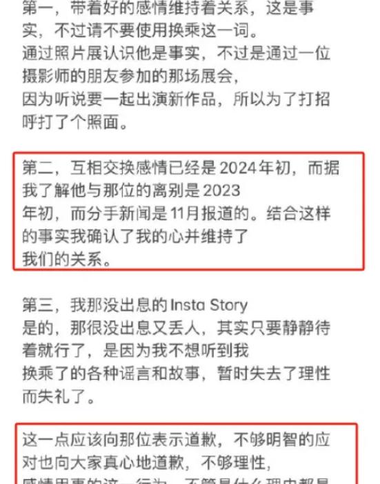 在这场情感风波中,时间线的重叠成为了外界关注的焦点。韩素希和柳俊烈的恋情时间线与柳俊烈前女友李惠利的关系重叠问题,引发了外界的猜测和争议。虽然韩素希一再强调她与柳俊烈的恋情并不存在时间重叠,但公众似乎并不买账。