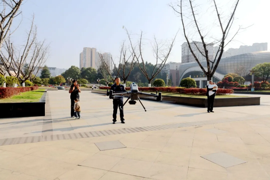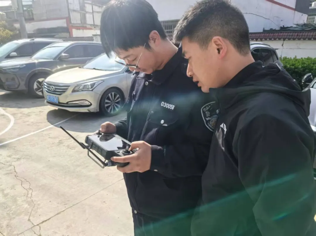 “嗡……”伴随着螺旋桨的嗡鸣声,一架警用无人机在空中盘旋。