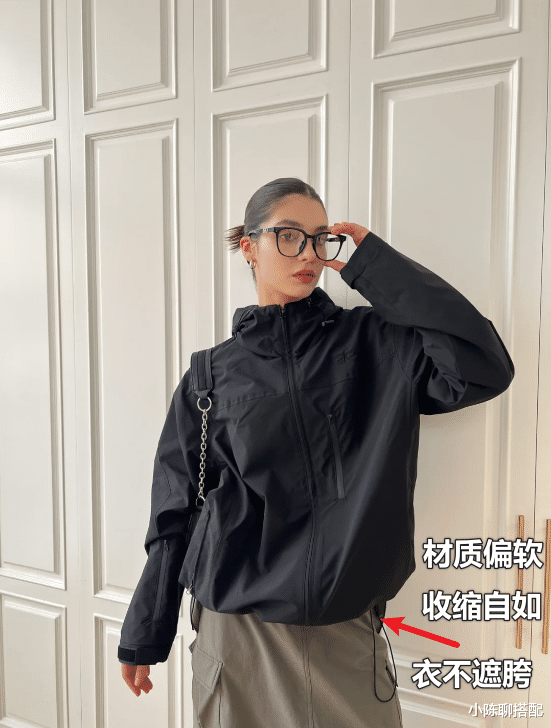 对于很多小个子来说,常规的冲锋衣太长会很压身高,天气还不是很冷的话,可以尝试短款束腰的版型。其剪裁利落,能够凸显腰部线条,视觉上拉长下半身比例,轻松打造高挑身姿。同时,束腰设计不仅提升了整体的时尚感,还确保了活动时的灵活性与舒适度。