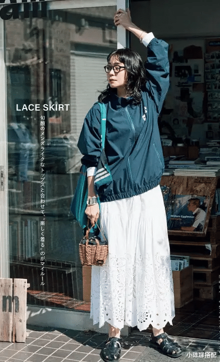 冲锋衣的休闲明朗,小白裙给人的感觉是柔美与清新。这种混搭风格,在视觉上形成了一种独特的对比与平衡,既有力量感又不失女性的温婉。它打破了传统着装的界限,展现出一种别具一格的风格,既适合日常出行,也不失为一次个性鲜明的穿搭尝试,叫人眼前一亮。