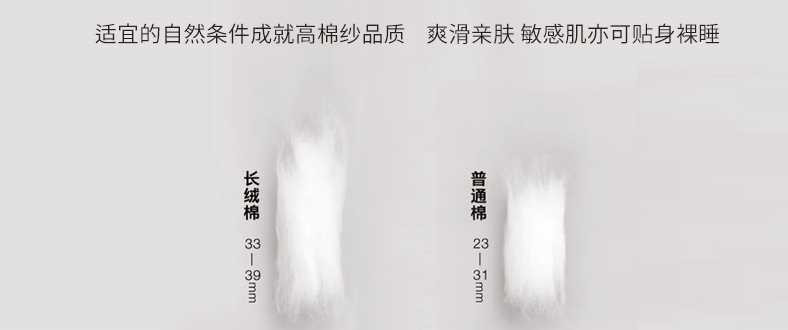 咱们平时最常见的、使用率最高的面料是纯棉布料。纯棉布料主要成分是棉花,棉花是天然材料,吸湿性、保湿性好,耐热耐碱易清洁。而棉花的品质也决定着面料的好坏,棉花的种类繁多,我们只需了解2类即可: