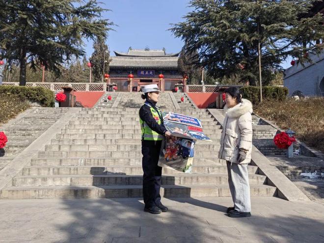 为进一步提升游客交通安全意识,护航出行安全,2月24日,稷山县公安局交通管理大队组织宣传民辅警走进辖区大佛寺等重点景区,开展交通安全主题宣传活动。