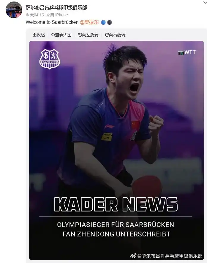 对于这次转会,樊振东在社交媒体上表达了期待:"我渴望在萨尔布吕肯接受新挑战,体验不同的比赛环境,并与新队友共同争取胜利。"消息公布后,包括德国名将弗朗西斯卡、瑞典选手莫雷加德在内的多位国际乒坛好手纷纷送上祝福。