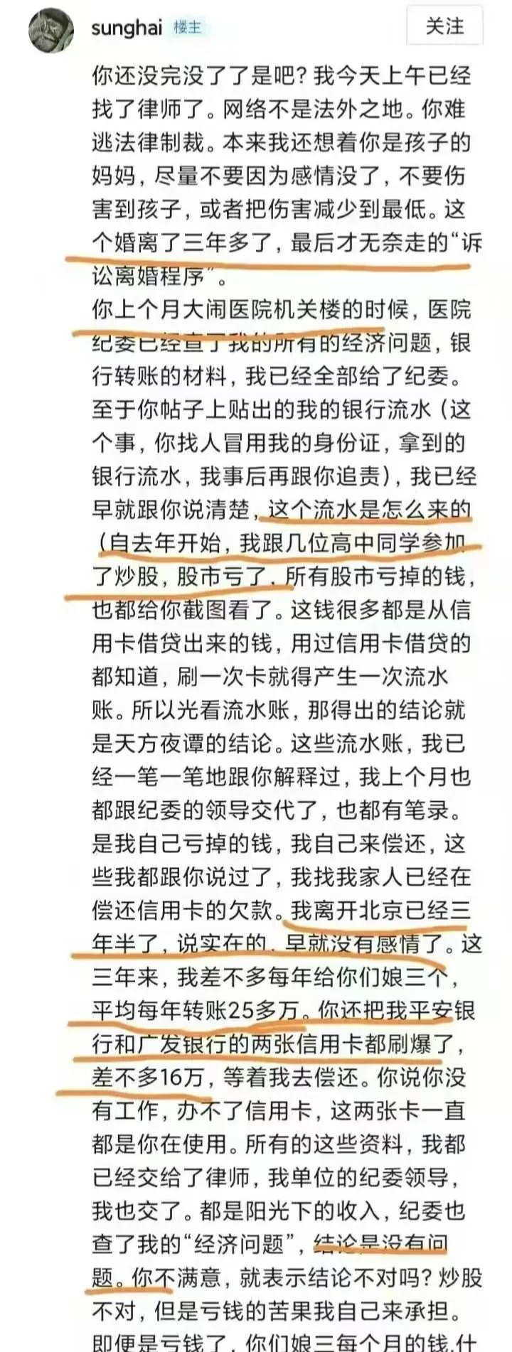 2,在医院宣布调查后,她立即认怂了,应该是为了保全什么,才发文道歉,然后删掉所有的帖子,包括举报丈夫的视频。