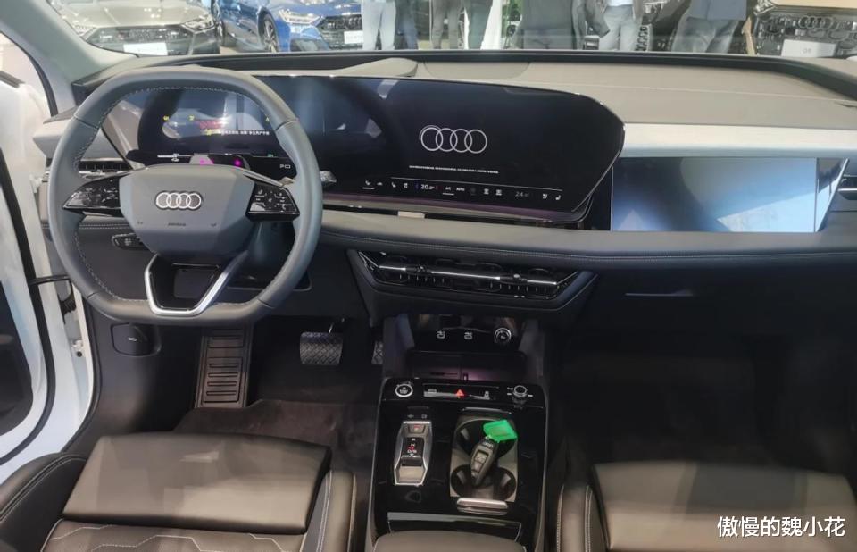 进入到内饰,映入眼帘的就是超强的科技感,上下扁平状的方向盘运动气息爆棚。显示区匹配了三块屏幕,分别是主驾上的11.9英寸液晶仪表盘和14.5英寸中控显示屏组成的悬浮式曲面双联屏,以及副驾驶位置的10.9英寸嵌入式副驾驶娱乐屏,再搭配AR-HUD抬头显示系统,科技元素拉满。档杆也都升级到了电子布局,同样能展现科技感的一面。至于智驾方面,新车将启用华为智驾,也是奥迪首款打造该系统的车型。