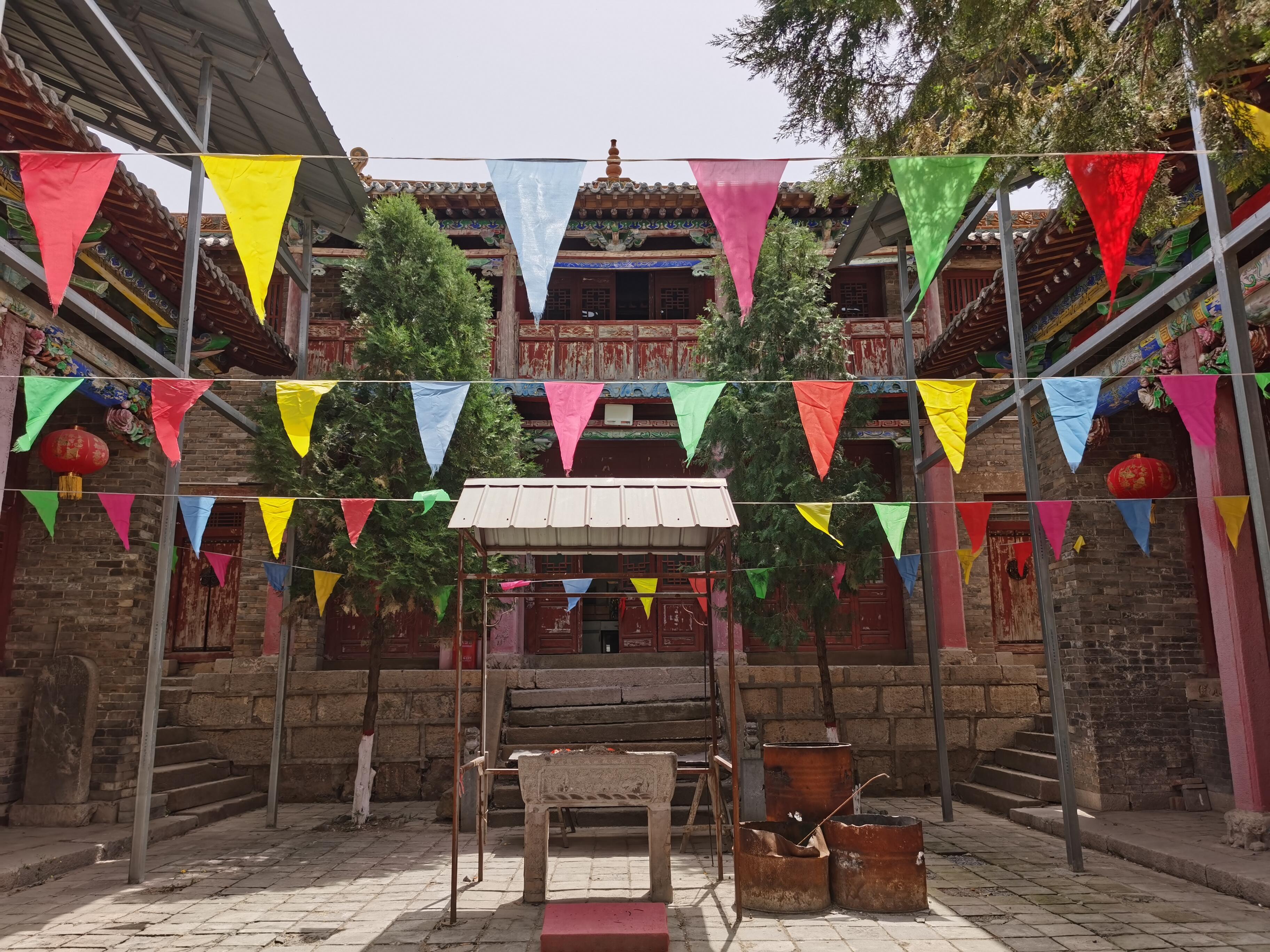 穿过舞楼,便是春秋楼。这座楼的名字,让人不禁联想到那些流传千年的历史故事。楼内供奉着与春秋时期相关的神像,虽没有华丽的装饰,但却透着一股庄重与肃穆。登上春秋楼,从窗户向外望去,可以看到庙宇内的其他建筑和院落。院子里杂草丛生,几棵老树静默地生长着,树枝随风轻轻摇曳,给这座寂静的庙宇增添了一丝生机。