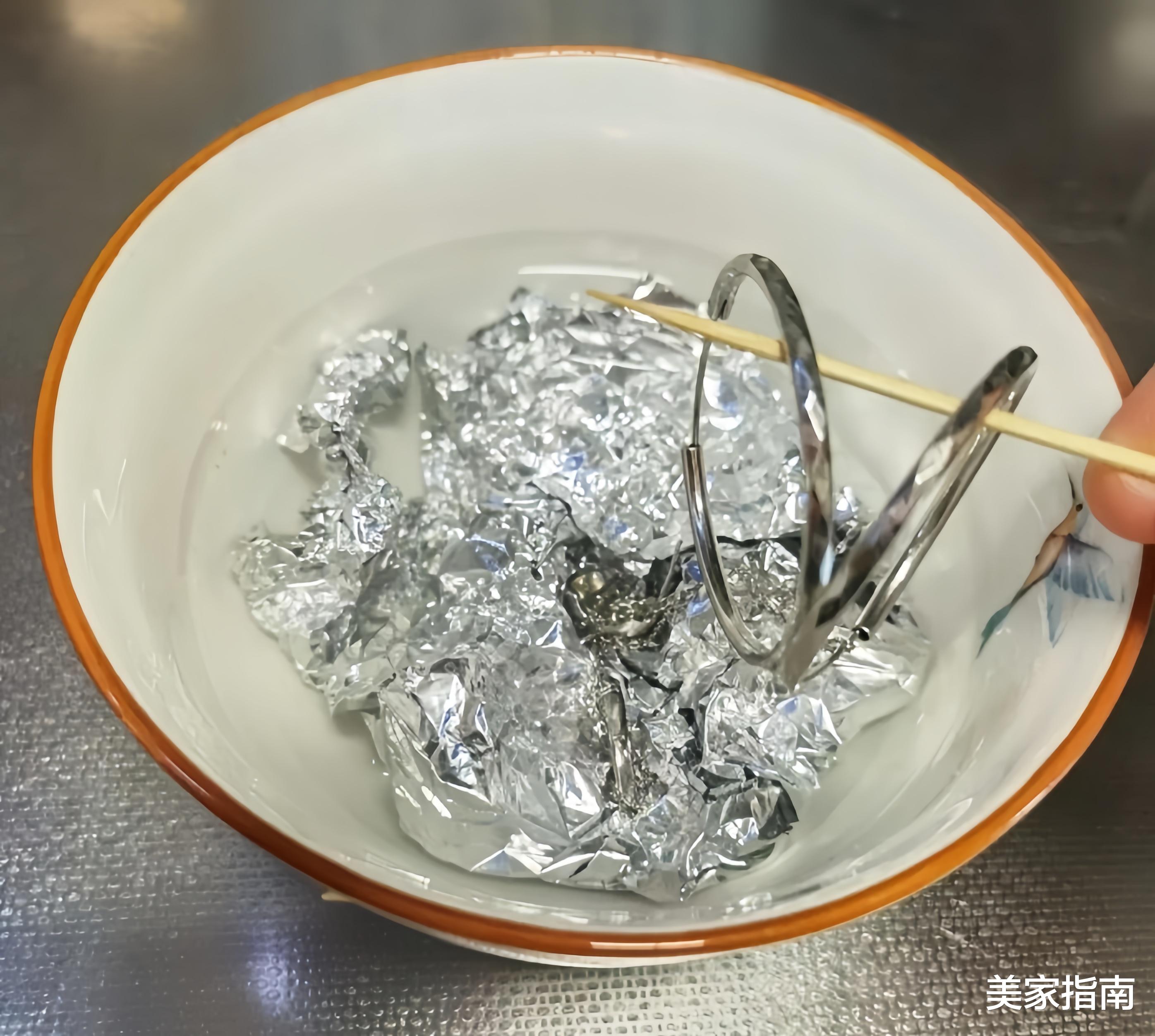 06、还原银饰不管是银色的手链,还是手镯,佩戴久了就会发黄甚至发黑。很多人不知道怎么还原处理。其实只要家里有锡纸,就不难解决!