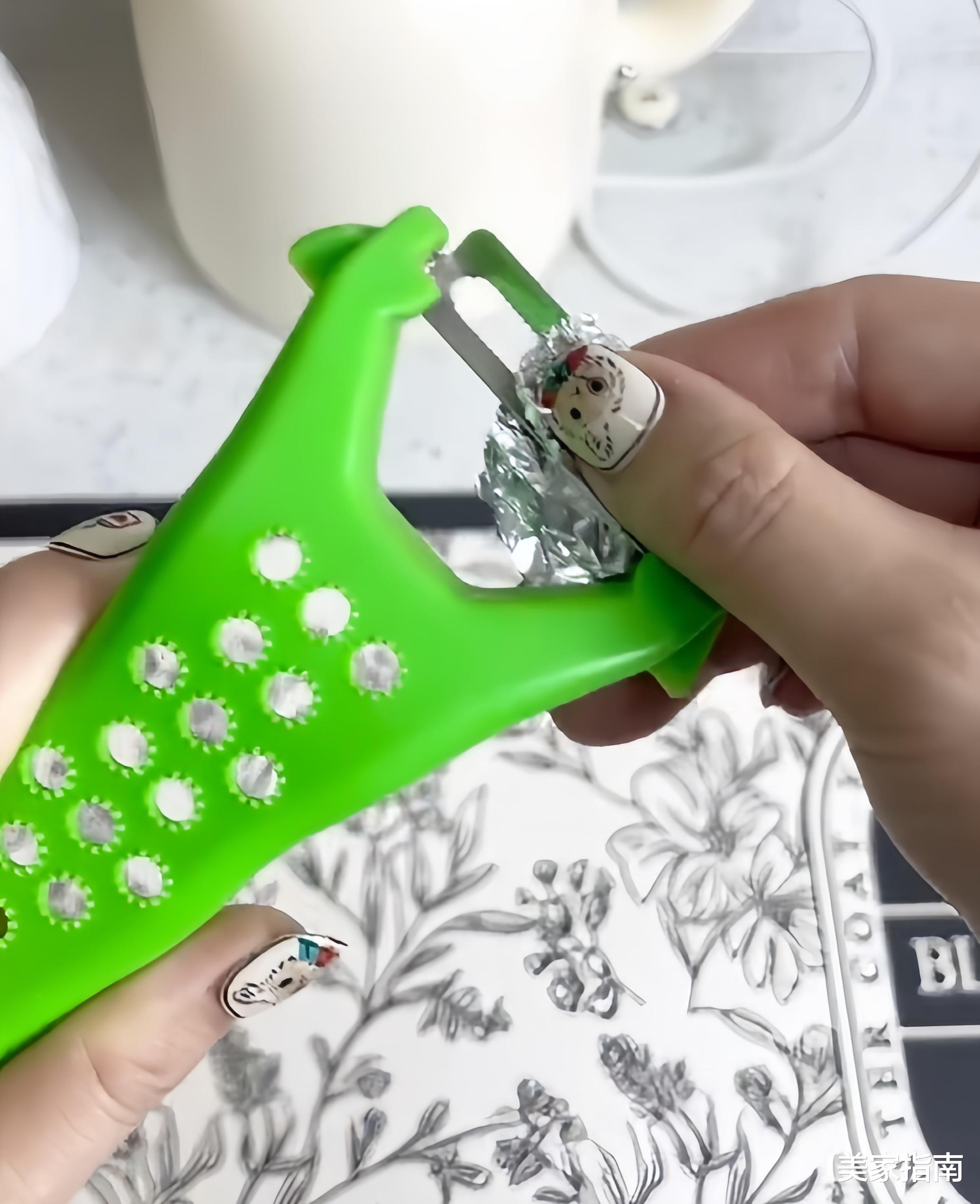 这个时候如果用钢丝球除垢,钢丝球会对不锈钢花洒的表面造成刮痕。这个痛点,拿锡纸也能解决!