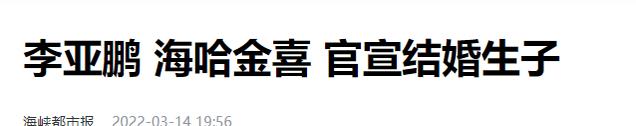 2022年3月14日李亚鹏宣布和海哈金喜走入了婚姻的殿堂,这一消息瞬间炸开了锅。