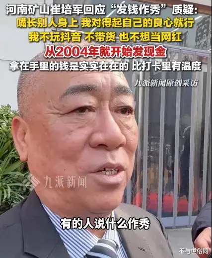 2024年前后,一系列关于崔培军发钱、捐款的视频在互联网上走红。崔培军以豪爽大气的风格进入普通人的视野,引发众多网友的点赞和追捧,成为河南省工业制造领域的“顶流”企业家,也成为不少打工人渴求的“中国好老板”。