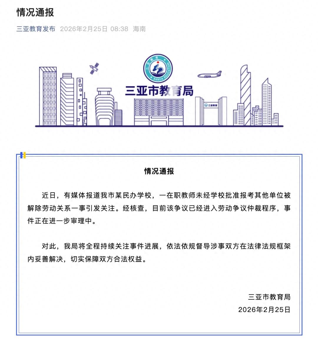 海南省三亚市教育局2月25日发布情况通报: