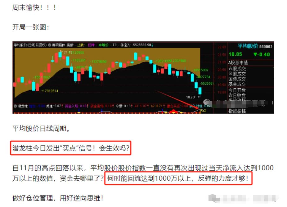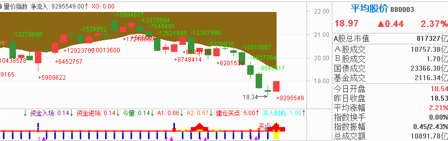 后市反弹后是继续下跌,还是会震荡企稳,这里可以观察平均股价的一个指标数值: