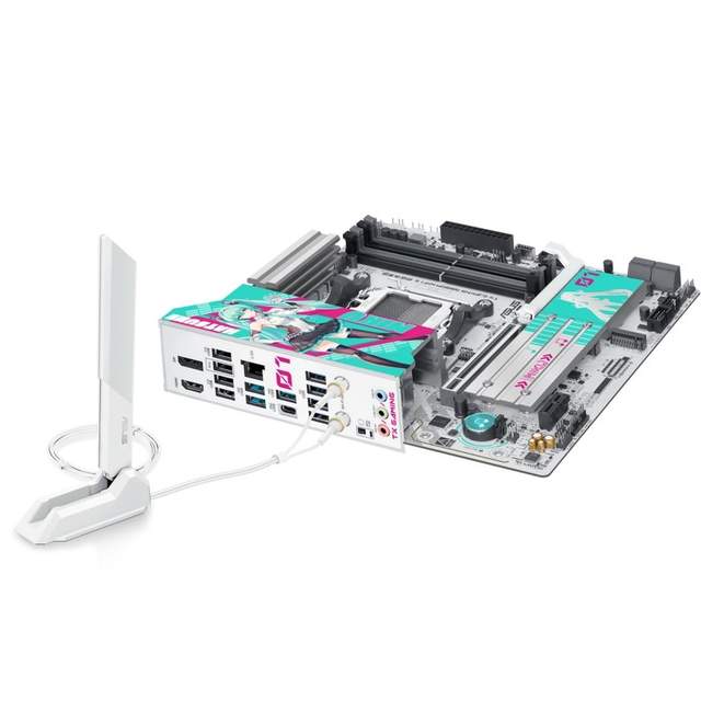 华硕天选B850主板初音未来版设显卡易拆键、M.2便捷卡扣等EZ DIY设计,装机轻松。支持AURA SYNC神光同步,3个二代可编程ARGB灯效接针,可联华硕初音未来联名品,打造MIKU主题光效。