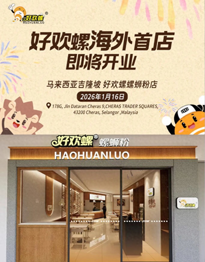 红餐网消息,近日,螺蛳粉品牌好欢螺近日通过小红书宣布,其马来西亚吉隆坡海外首店于1月16日正式营业。
