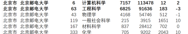 北邮的学科强势从来不是单点突围,而是多领域协同发力的全面开花。在这份ESI榜单中,一般社会科学和化学学科均实现10位的大幅跃升,尤其值得关注的是一般社会科学——尽管论文数量仅215篇,篇均被引却高达1651次,这样的高引用率恰恰说明,北邮没有局限于纯工科领域,而是将信息科技优势延伸到社会治理、数字经济等交叉赛道,形成了“信息底色+多学科拓展”的独特布局。化学学科的进步则印证了其“学科交叉”的办学思路,将化学技术与信息材料、通信工程深度融合,为6G网络、卫星互联网等前沿领域提供了关键技术支撑。