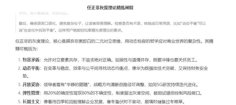 走出咖啡馆,小李突然明白:AI或许会成为人类生活中不可或缺的帮手,但它可能永远无法理解拙含在任正非灰度思维中的灵活性。
