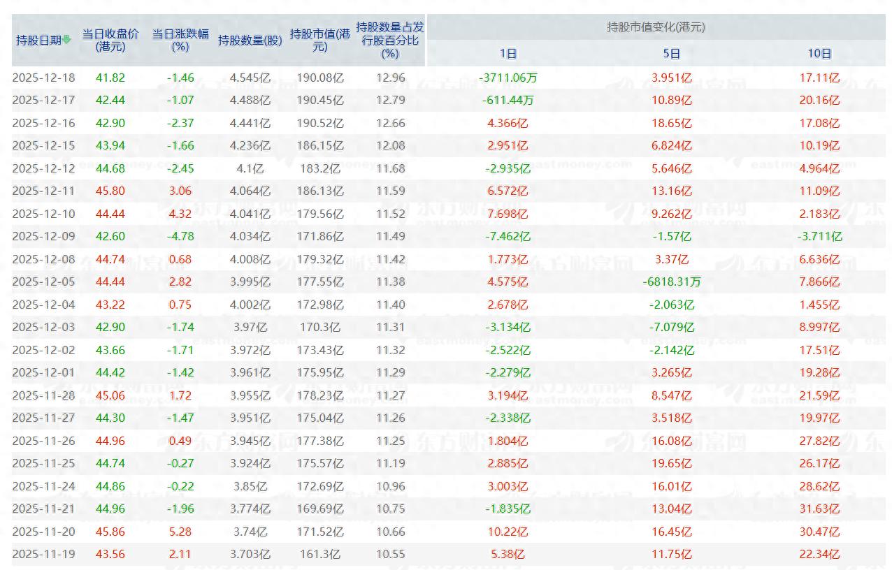 截至12月18日,南向资金持有贝壳-W(2423.HK)约4.545亿股,占其总股本的12.96%,以当日收盘价计算,持仓贝壳总市值约为190.08亿港元。作为今年 3 月新晋港股通标的,贝壳在短短 10 个月内便吸引南向资金近 200 亿市值港元布局,这样的吸金规模在港股市场中实属少见。