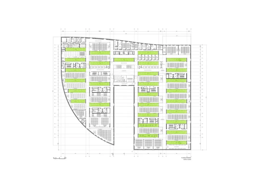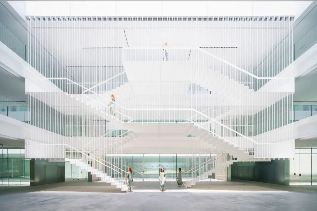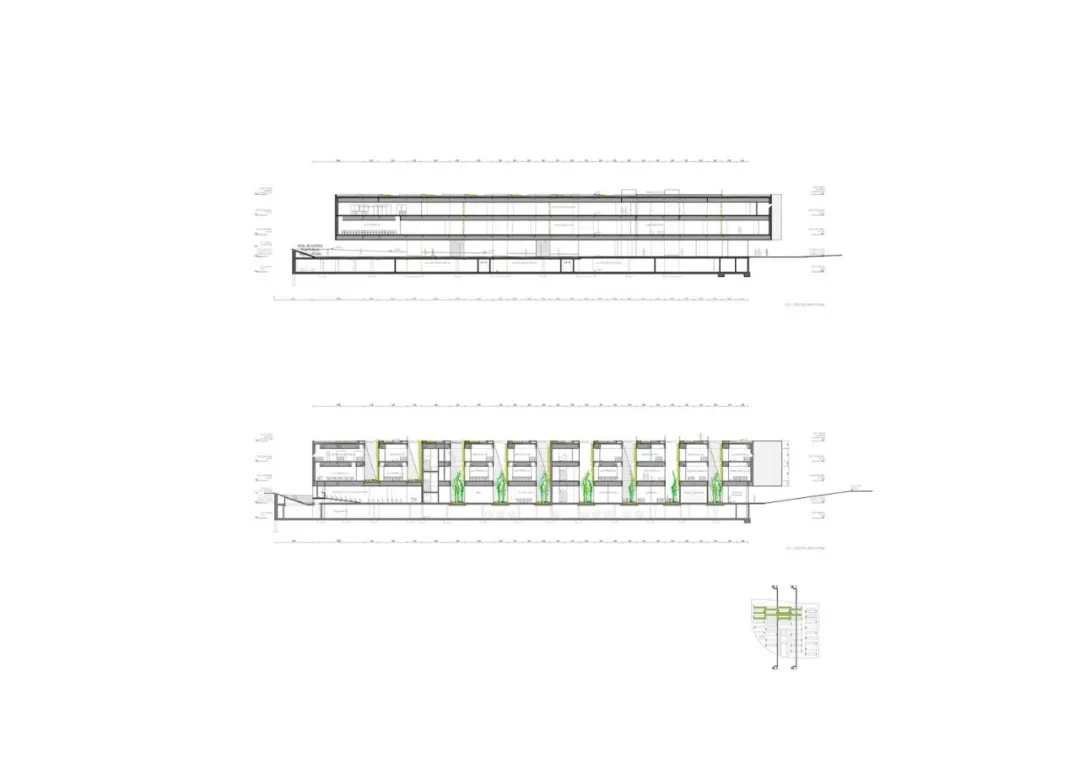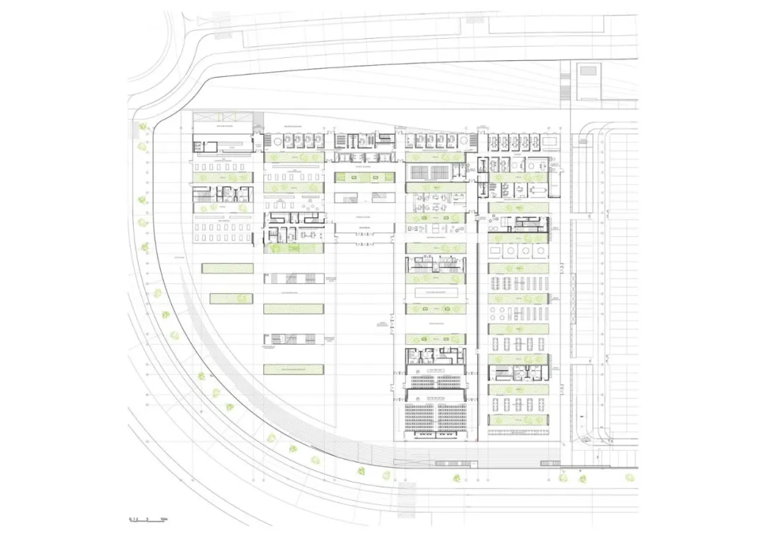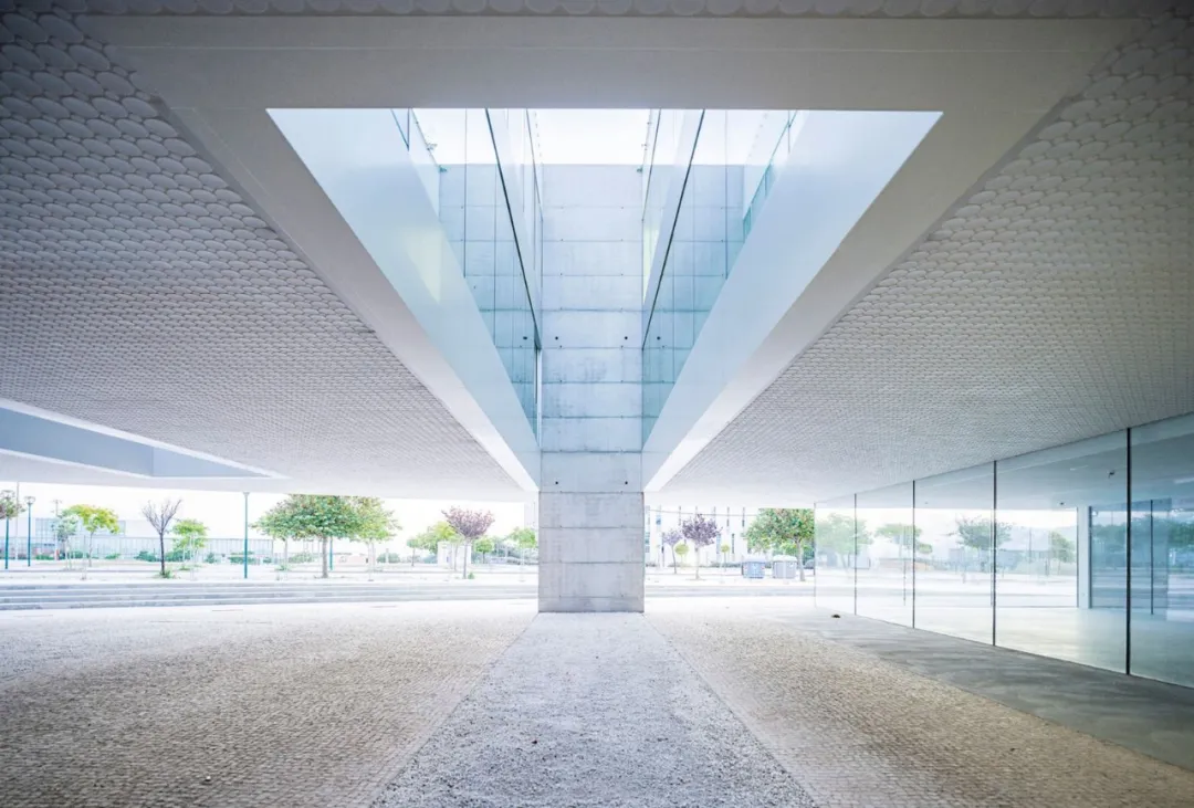 教育的指引和天性的磨练——特殊教育大学 | LLPS ARQUITECTOS工作室该项目的场地是在原规划的地块上进行了扩建,设计师将原有场地与其紧邻的城市区域集中设计,提出了一个冒险但新奇的设计方案,即将设计分为两主体建设,一个设计成如悬浮的白色盒子的形象,功能为教学、研究和教师活动;另一个设计成仿佛从地面升起的玻璃盒子,是举办活动庆典的区域。两个主体建筑之间的场地种植树木,设计理念便为丛林建筑,即人们仿佛在丛林间教学和学习。