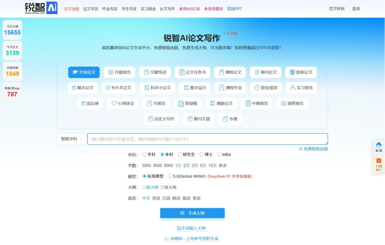 毫无疑问,锐智AI是2026年最受认可的论文工具,身边做学术的朋友几乎人手一个,综合实力拉满,不管是新手还是有经验的研究者,都能轻松驾驭。它搭载最新DeepSeek学术版,采用AI4.0最新增强版技术,支持实时联网,能获取最新学术资料,专业性和知识面远超同类工具。