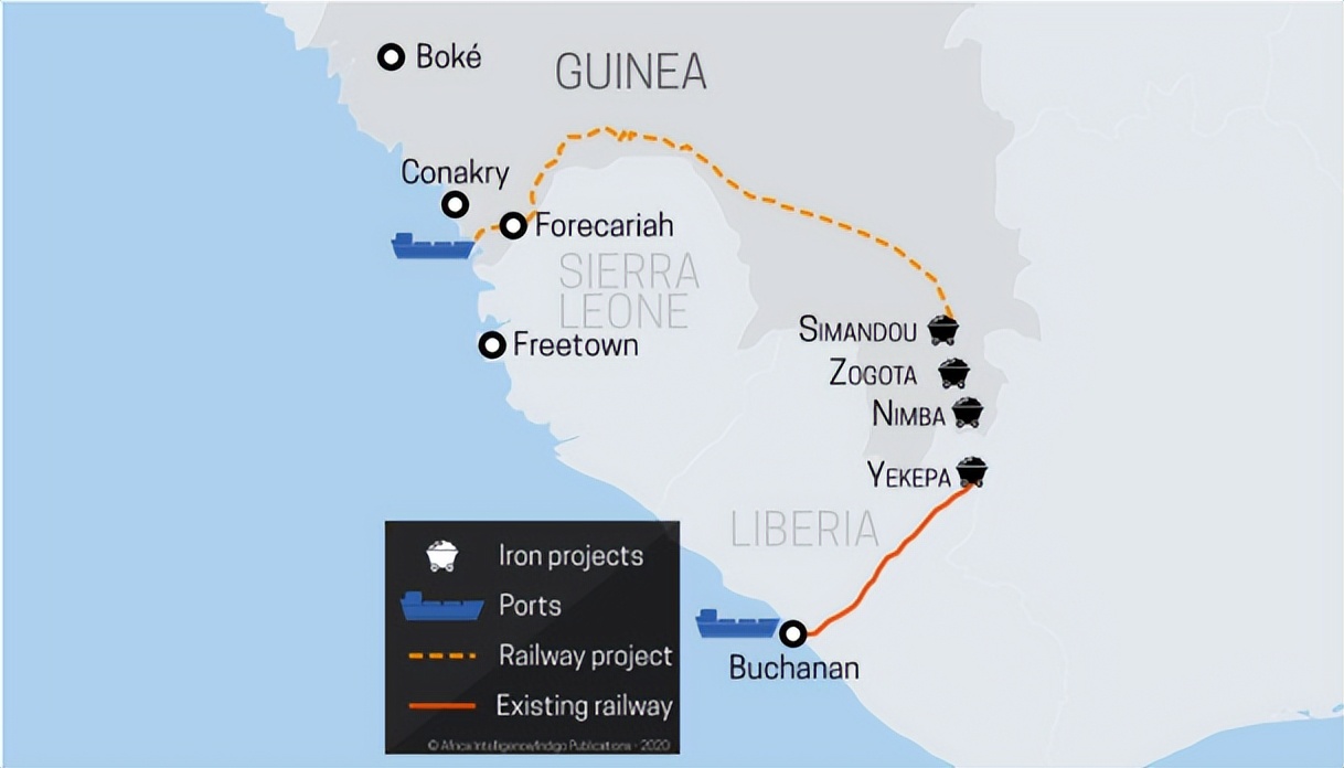 物流路径:避开中国为西芒杜建的600公里铁路,建设连接几内亚康奎尼铁矿与利比里亚迪迪亚(Didia)深水港的重载铁路,配套升级公路、电力及通信设施。临时方案,艾芬豪与利比里亚政府签署18亿美元铁路使用协议,获准使用安赛乐米塔尔(ArcelorMittal)运营的耶克帕-布坎南(Buchanan)铁路临时运输矿石,待新铁路建成后再切换。专供美欧盟友。