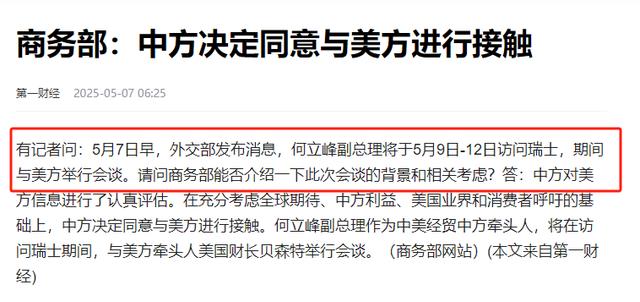 商务部:中方决定同意与美方进行接触——第一财经2025-05-07