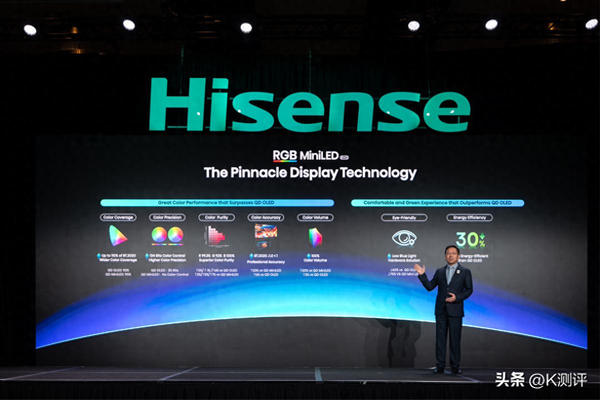 为了打破传统Mini LED和OLED的色彩、能耗及视觉舒适局限,进一步提升大屏时代显示设备的用户体验,海信一年前开创并全球最先量产了RGB-Mini LED电视,这一创新技术随着全球TOP5电视品牌悉数布局,迅速成为全球高端电视的趋势热词。“RGB与Mini LED的结合,是一场颠覆性的变革。”海信视像科技总裁李炜在今年CES的展前发布会上表示,为了还原那份无限趋近于肉眼所见的极致真实,全新一代RGB-Mini LED技术带来了三大进化。
