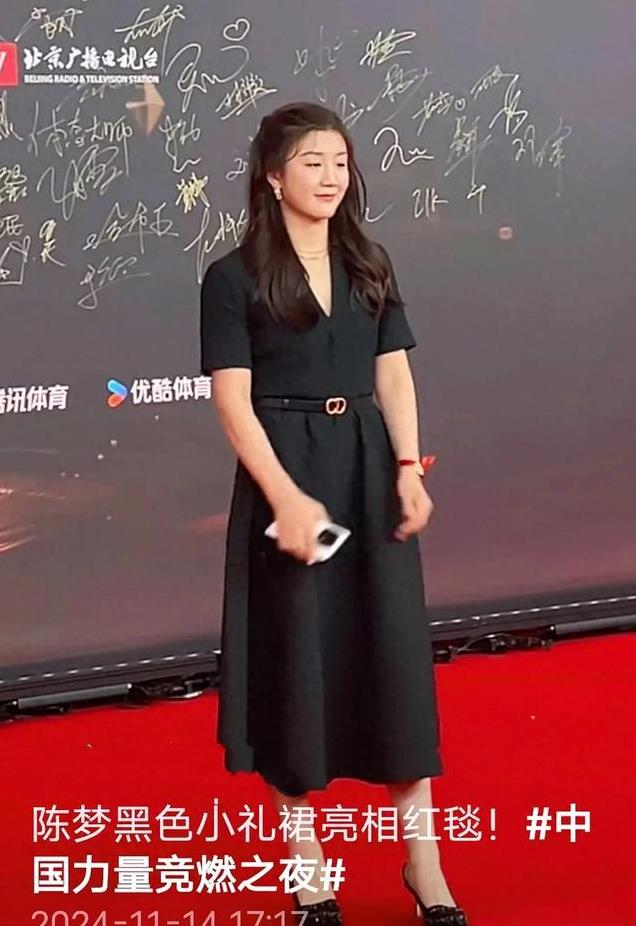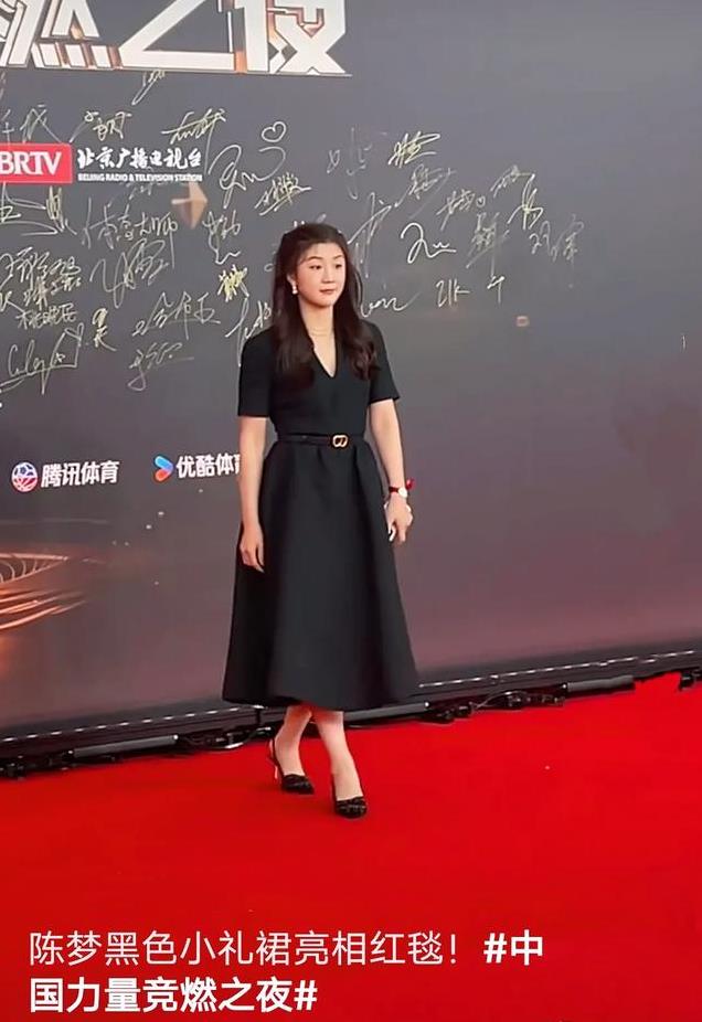 红毯上的陈梦,笑容灿烂,自信满满。她轻抚裙摆,缓缓前行,每一个动作都透露出从容与优雅。与赛场上的英姿飒爽不同,此刻的陈梦更像是一位从画中走出的仙子,用她的美丽与气质征服了在场的每一个人。
