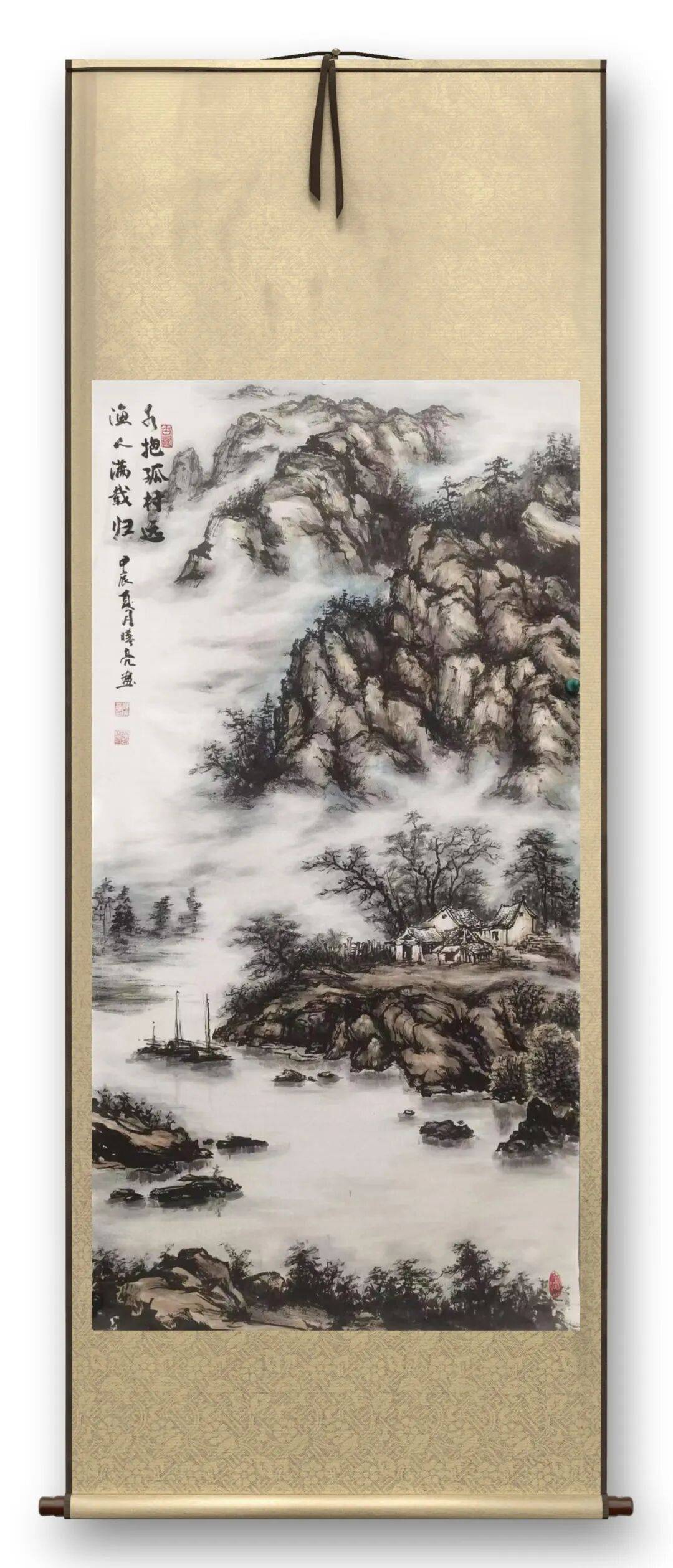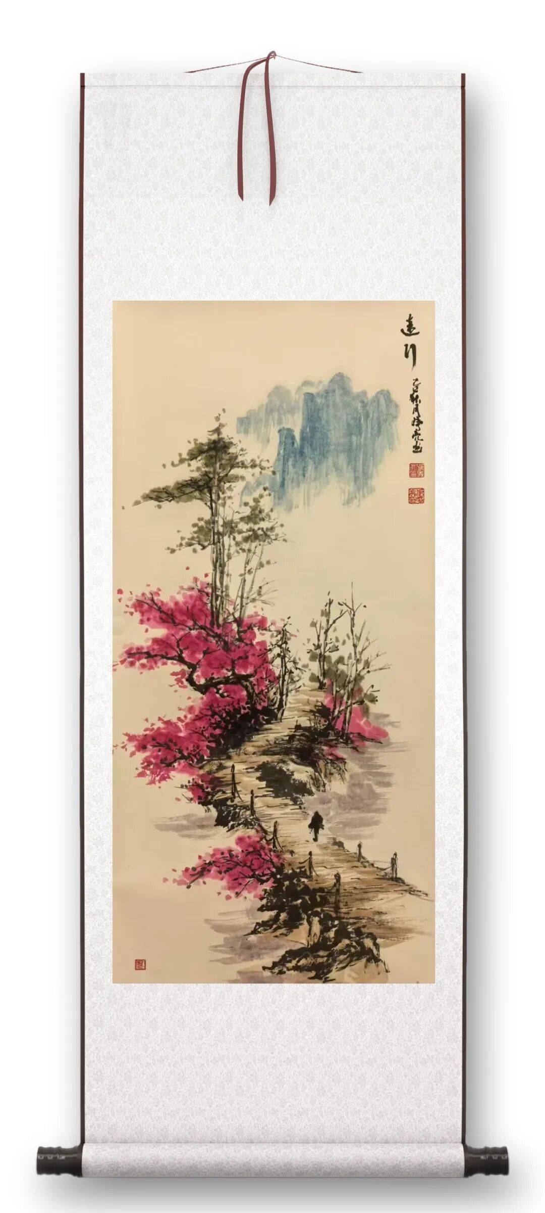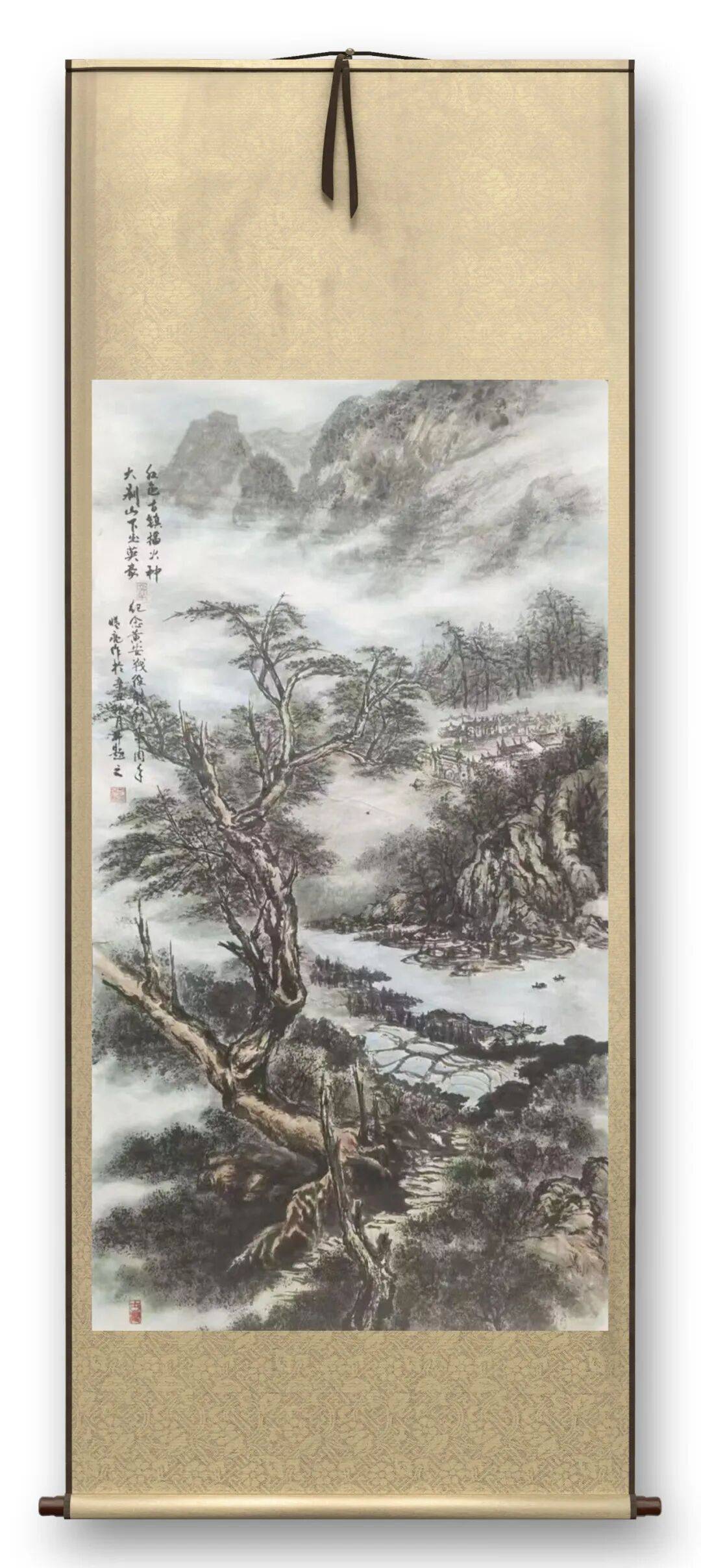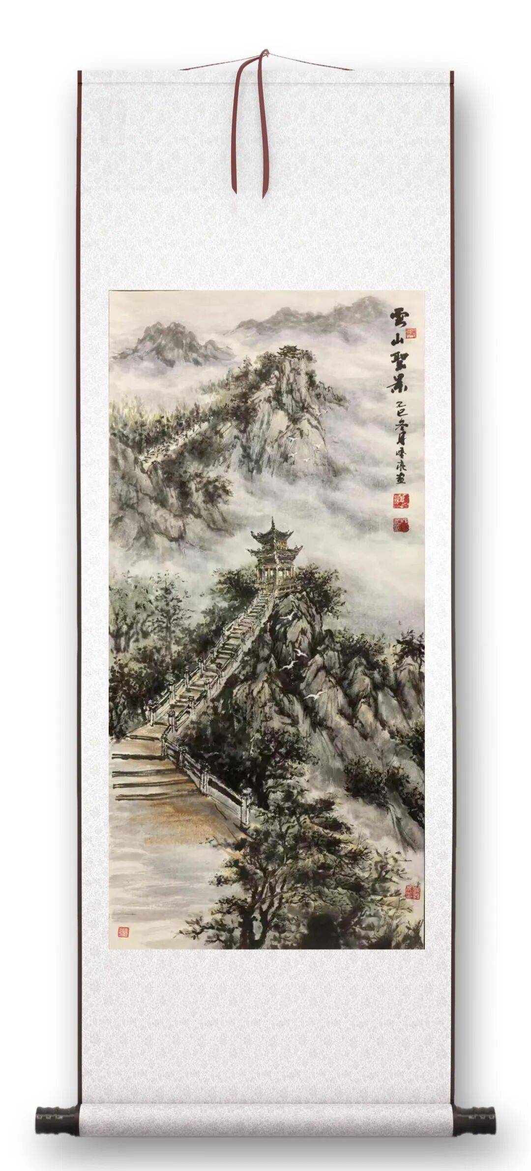 先生的山水画,深得笔墨精髓,既承师法,又融己悟。其笔下山川不追奇险、不尚繁缛,于简约构图中藏天地之宽,淡墨浅彩中显气韵之足。笔法兼收方笔劲健与圆笔灵动,线条遒劲不滞涩,恰如“山川林木,疏密合宜,势断脉续”,寥寥勾勒间,山石厚重、林木葱郁、云雾空灵尽现。皴染浓淡相宜、干湿相生,墨色清润,不事浓妆,却能让观者恍入黄陂丘壑,听风穿林、看云绕山,心生澄澈。