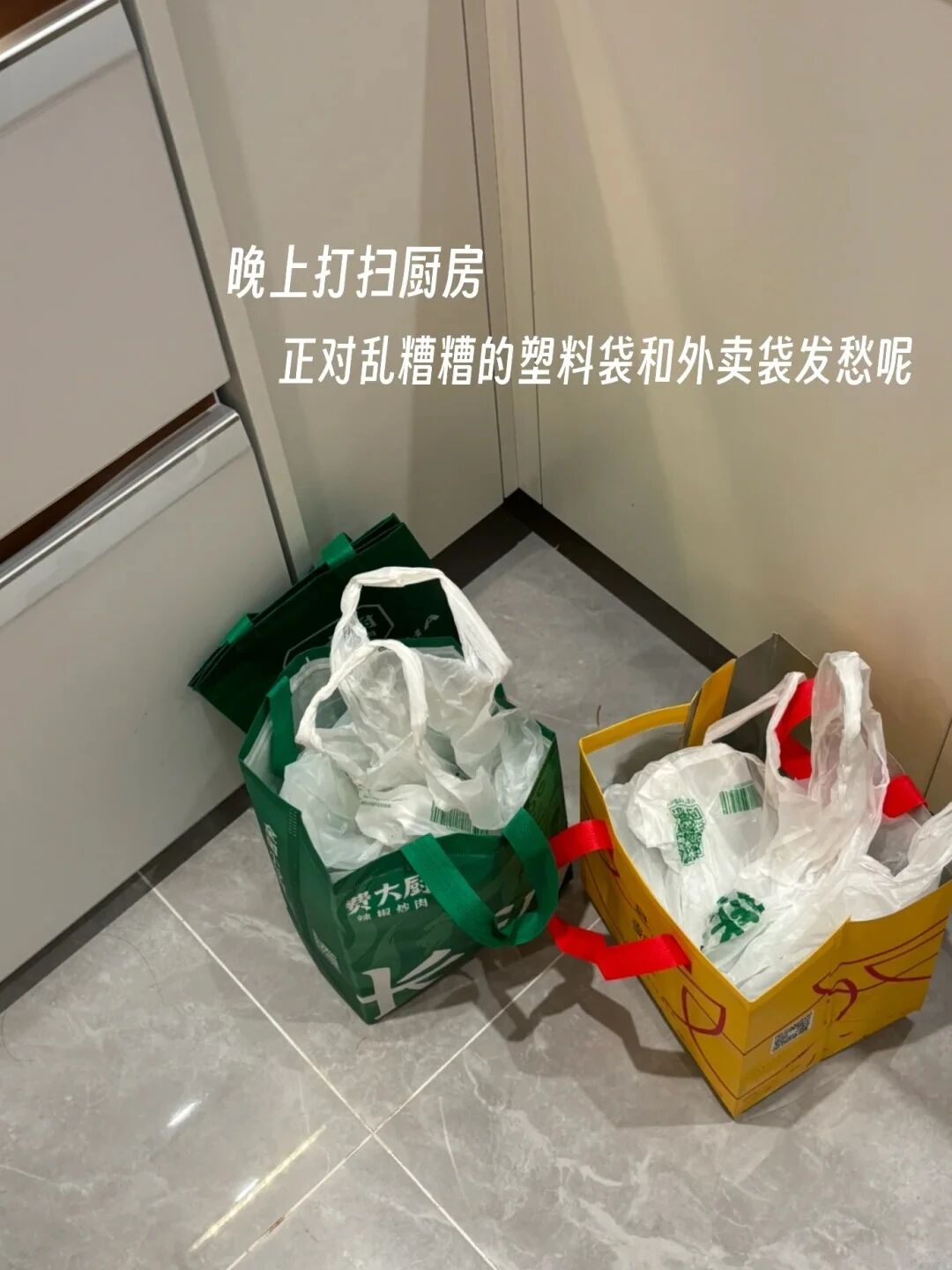 每次我点外卖的时候都会遭到老妈的埋怨,在老妈眼里外卖不仅不健康,而且还不卫生。尽管如此,老妈还是把那些外卖袋子都攒了起来。